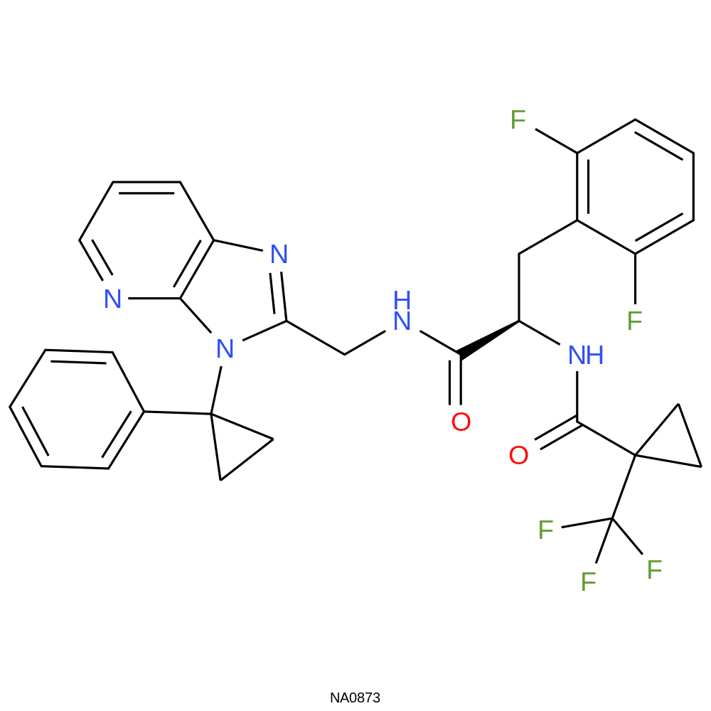 | IUPAC Name | N-[(2R)-3-(2,6-difluorophenyl)-1-oxo-1-[[3-(1-phenylcyclopropyl)imidazo[4,5-b]pyridin-2-yl]methylamino]propan-2-yl]-1-(trifluoromethyl)cyclopropane-1-carboxamide | |