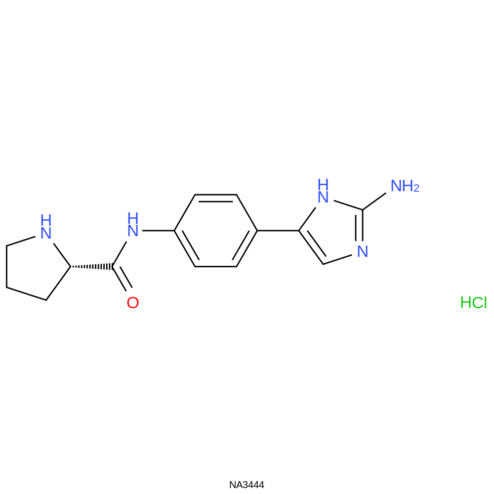 | InChI | InChI=1S/C14H17N5O.ClH/c15-14-17-8-12(19-14)9-3-5-10(6-4-9)18-13(20)11-2-1-7-16-11;/h3-6,8,11,16H,1-2,7H2,(H,18,20)(H3,15,17,19);1H/t11-;/m0./s1 | |