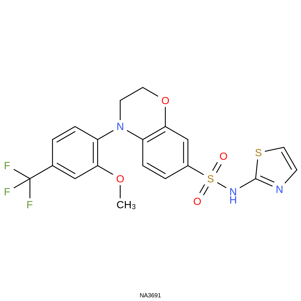 | SMILES | COc1cc(C(F)(F)F)ccc1N1CCOc2cc(S(=O)(=O)Nc3nccs3)ccc21 | |