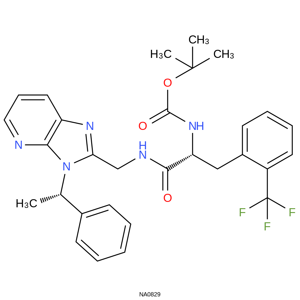 | SMILES | C[C@@H](c1ccccc1)n1c(CNC(=O)[C@@H](Cc2ccccc2C(F)(F)F)NC(=O)OC(C)(C)C)nc2cccnc21 | |