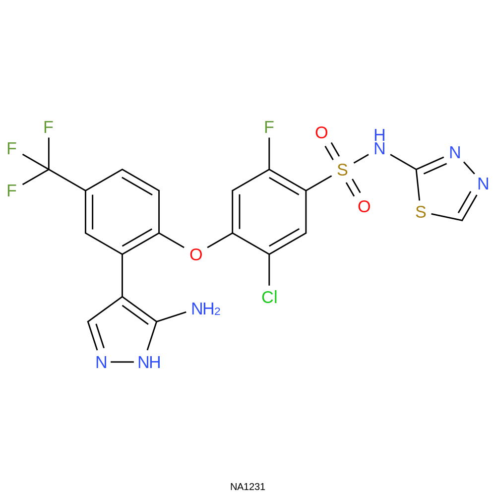 | IUPAC Name | 4-[2-(5-amino-1H-pyrazol-4-yl)-4-(trifluoromethyl)phenoxy]-5-chloro-2-fluoro-N-(1,3,4-thiadiazol-2-yl)benzenesulfonamide | |