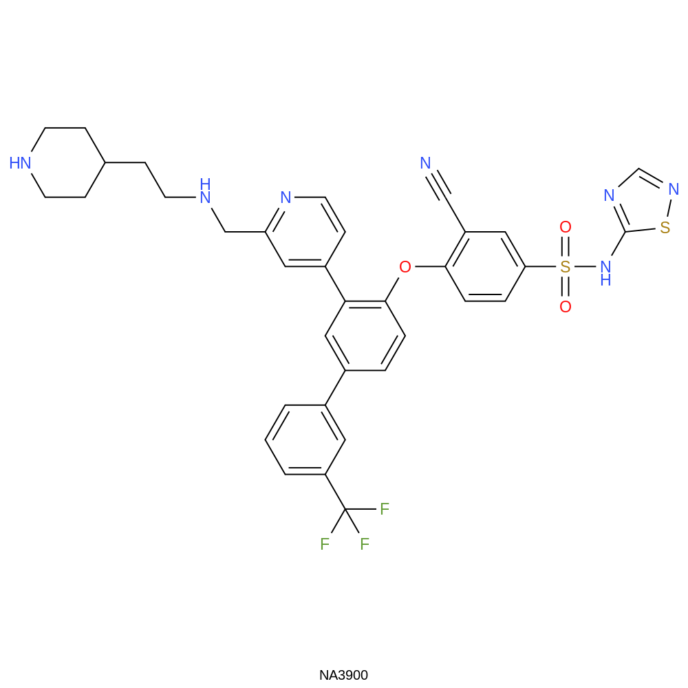 | IUPAC Name | 3-cyano-4-[2-[2-[(2-piperidin-4-ylethylamino)methyl]pyridin-4-yl]-4-[3-(trifluoromethyl)phenyl]phenoxy]-N-(1,2,4-thiadiazol-5-yl)benzenesulfonamide | |