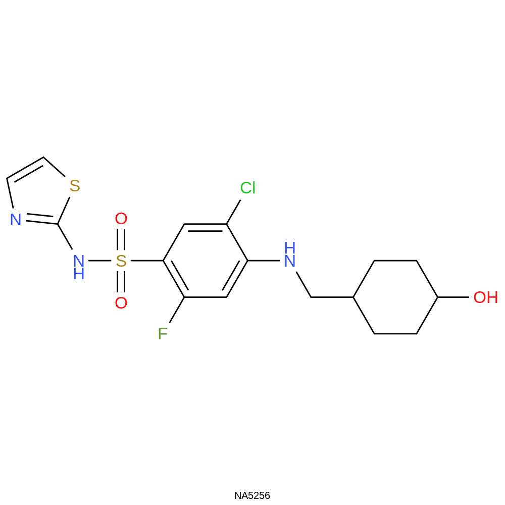 | SMILES | O=S(=O)(Nc1nccs1)c1cc(Cl)c(NCC2CCC(O)CC2)cc1F | |